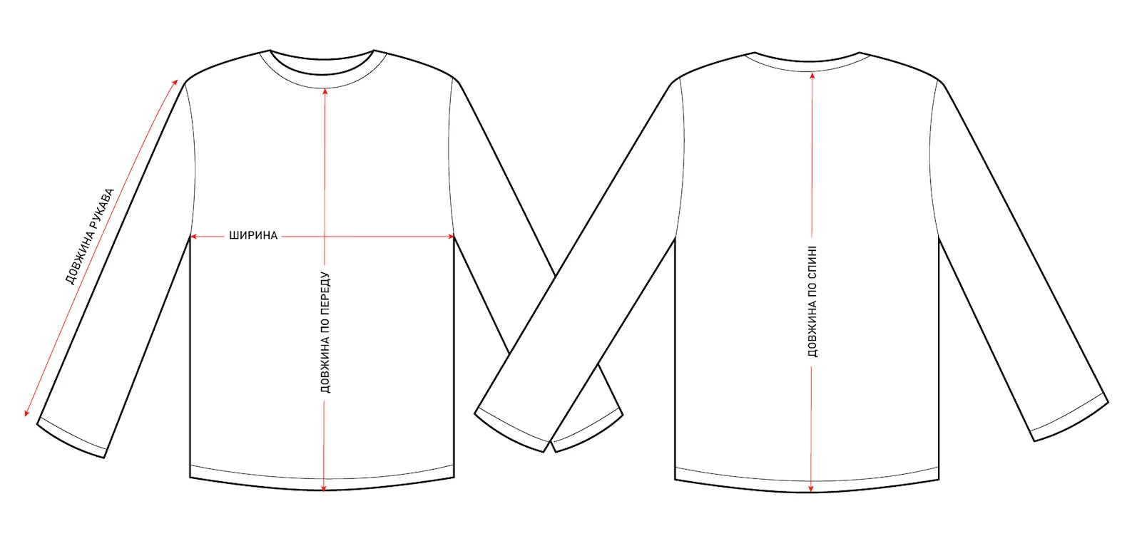 РОЗМІРШИРИНА У ГРУДЯХДОВЖИНА ПО ЦЕНТРУ ПЕРЕДУДОВЖИНА ПО ЦЕНТРУ СПИНИДОВЖИНА РУКАВА