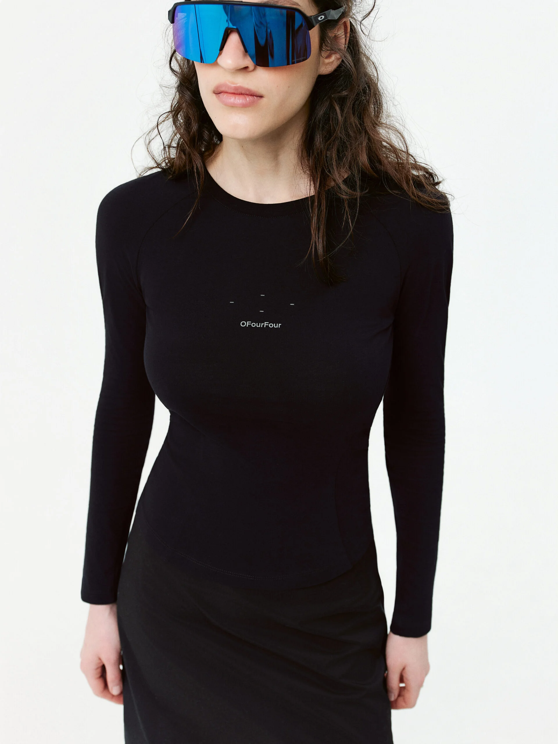 Базовий лонгслів із фігурними лініями, що нагадують дороги та м’яко огортають тіло. Має обтислий силует, який відчувається як друга шкіра. Завдяки високоякісній бавовні пасує як для спортивних занять, так і для доповнення повсякденних образів.